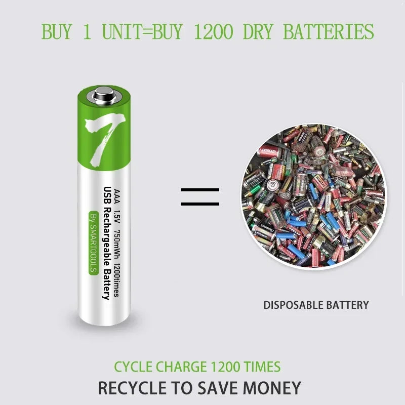 A bateria AAA de 750mWh é recarregável,